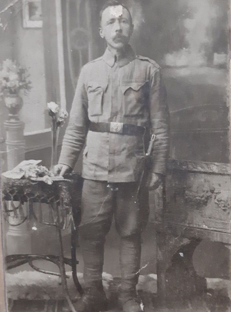 owyżej, trochę podniszczone), w mundurze armii austriackiej, zrobione na terenie Czech, gdy wybierał się na urlop wojskowy będąc w armii austriackiej. Galicja była wtedy pod zaborem austriackim. W dawnej Małopolsce (Galicji), czyli w zaborze austriackim powoływano wtedy mężczyzn do wojska austriackiego i każdy powołany musiał się tam stawić. Jak wspomniałem był m. in. na froncie włoskim. Miał szczęście, bo wrócił z I Wojny Światowej praktycznie bez szwanku, poza wrzodami żołądka i łuszczycą nóg, które leczył praktycznie do końca swoich dni.