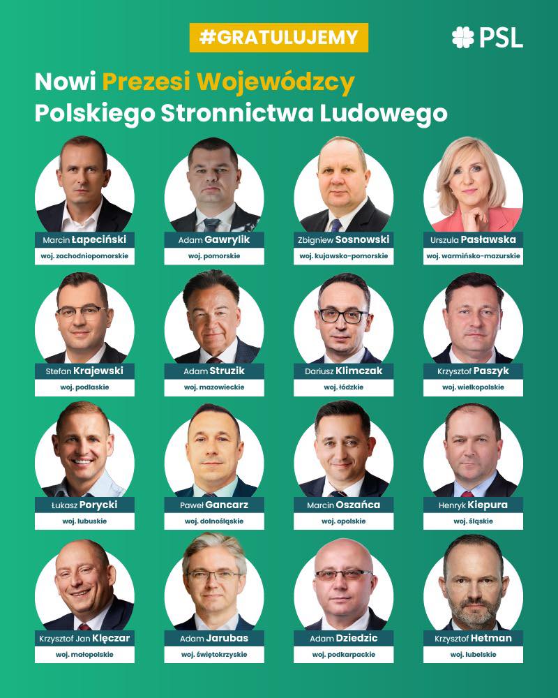 W sobotę 15 listopada 2025 r. kongres PSL w Warszawie ponownie wybrał na prezesa partii Władysława Kosiniaka-Kamysza; przewodniczącym Rady Naczelnej został wicemarszałek Sejmu Piotr Zgorzelski. Pokonał on dotychczasowego szefa Rady Waldemara Pawlaka.